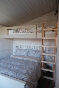 - Sleeps 5 (plus cot) — 1 king, 1 x double, 1 x single bunk (in double room)